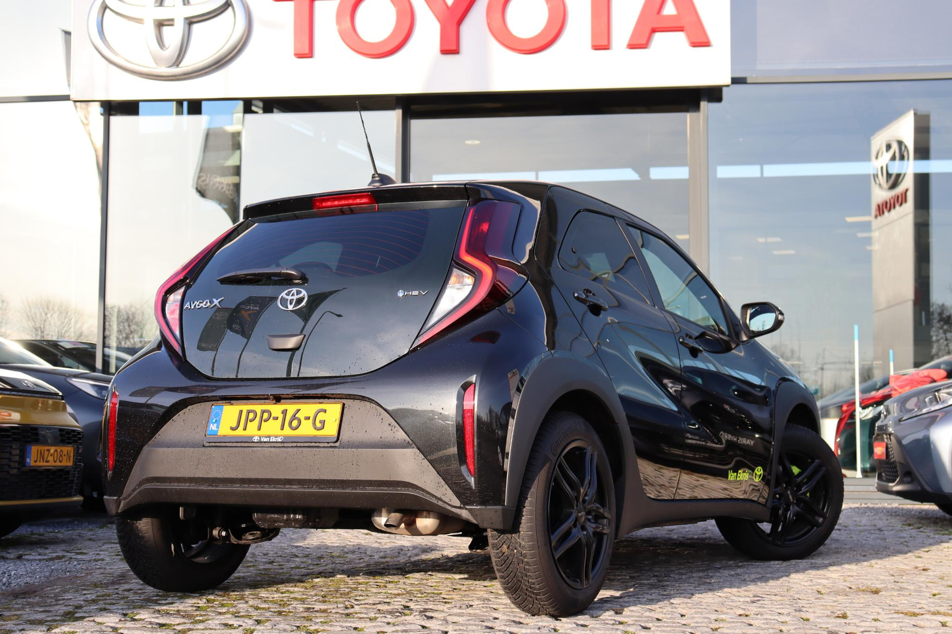 Aygo X Hybride 115 PK Play Green uitvoering. De Aygo met automaat is uitgevoerd met Groene remklauwen, 17 Inch zwarte LM vegen met Allseason banden, Getinte ramen, Draadloos Apple carplay en Android auto, Adaptieve cruise controle, Safety sense, parkeercamera en meer.