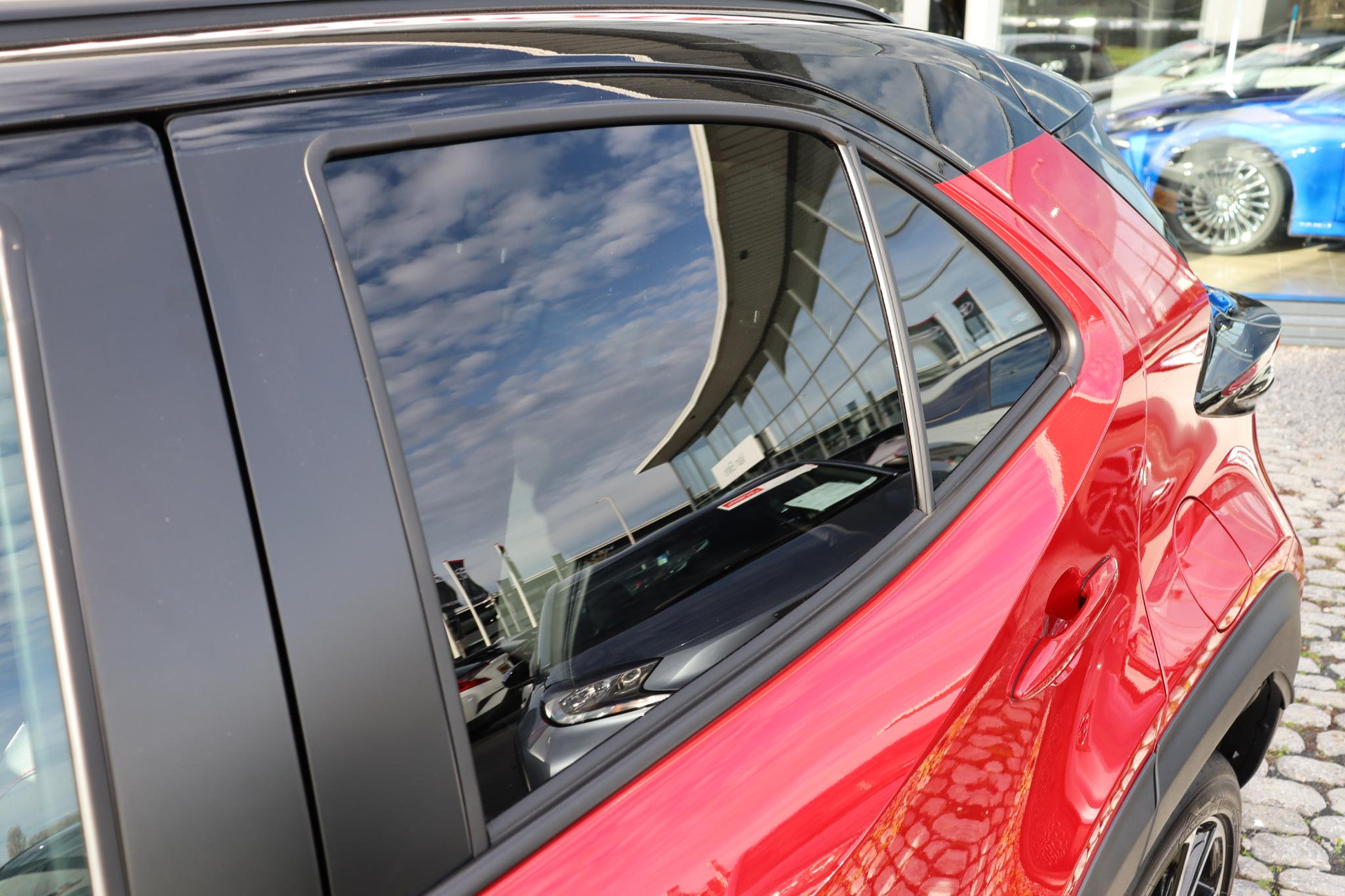 Prachtige Yaris Cross 130 GR Sport Limited in de kleur Emotional Red met zwarte bovenzijde. Deze Cross is voorzien van het GR Pack met o.a Panoramadak, Head up Display JBL Audio, Handmatig zonnescherm. Zo heeft de auto ook, parkeersensoren voor en achter, blind spot monitor, Draadloze Apple Carplay, Android auto, Draadloze telefoonoplader, Stoelverwarming voor, Een elektrische achterklep, prachtige GR accenten en de GR lichtmetalen velgen.